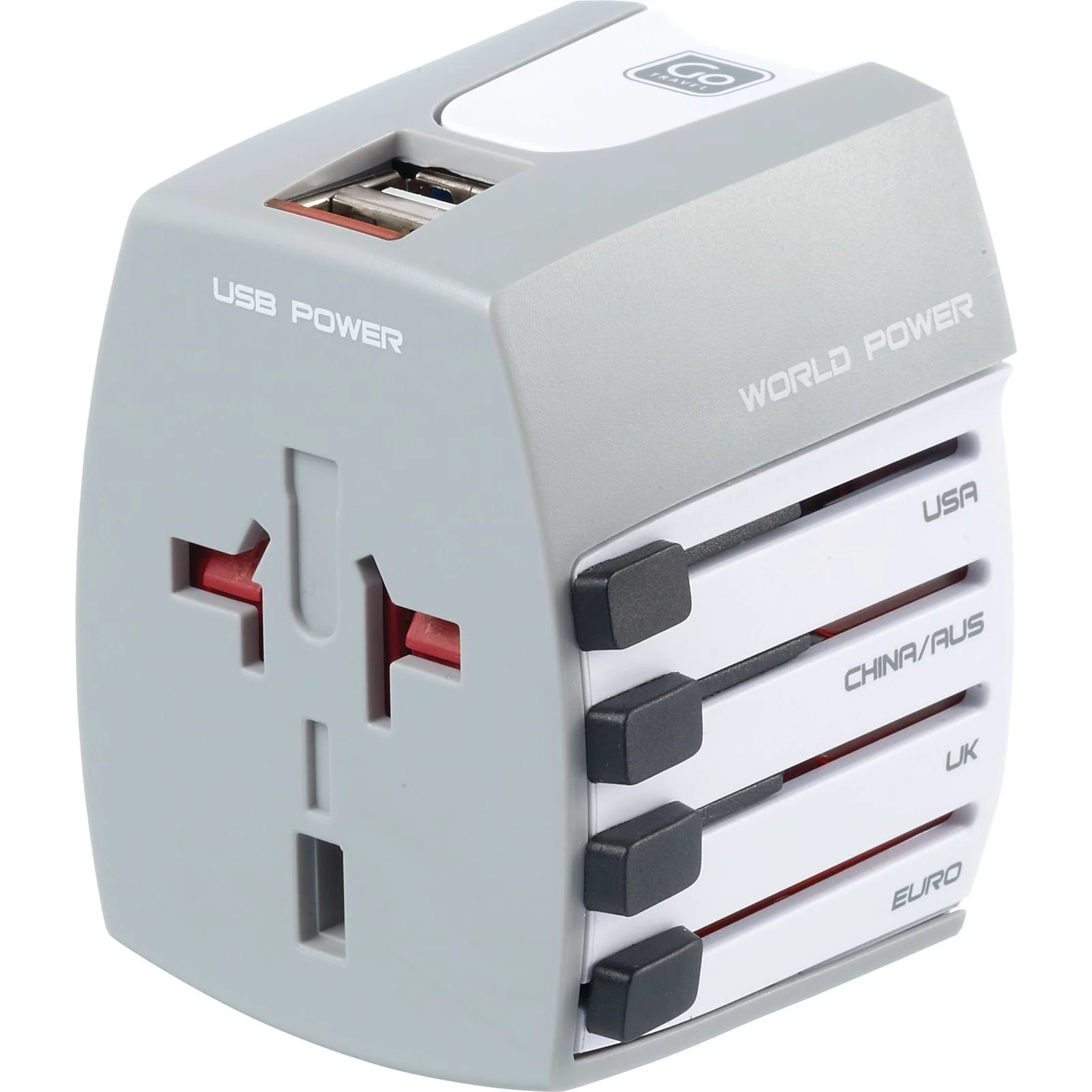 Power up your devices in over 150 different countries worldwide with one amazing unit. Just press and slide out the required pins and you're ready to go. Dual USB ports.