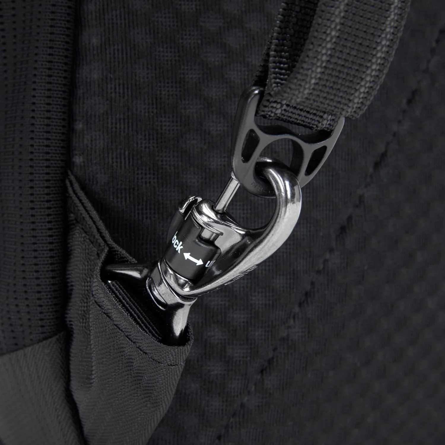 - Cut-resistant anchor strap secures around a fixed object to protect your bag